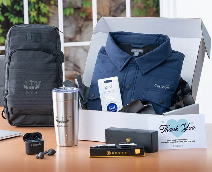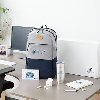 Picture this: a fully customized Welcome Box, featuring items like a journal, drinkware, lanyard, mouse pad, pen, tote bag, or post-it notes – all meticulously chosen for on-site or home office use. As the era of remote work continues to rise, these kits are conveniently drop-shipped to the employee's home, bringing the welcome experience directly to them.